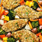 One Pan Crispy Walnut Herb Chicken and Vegetables